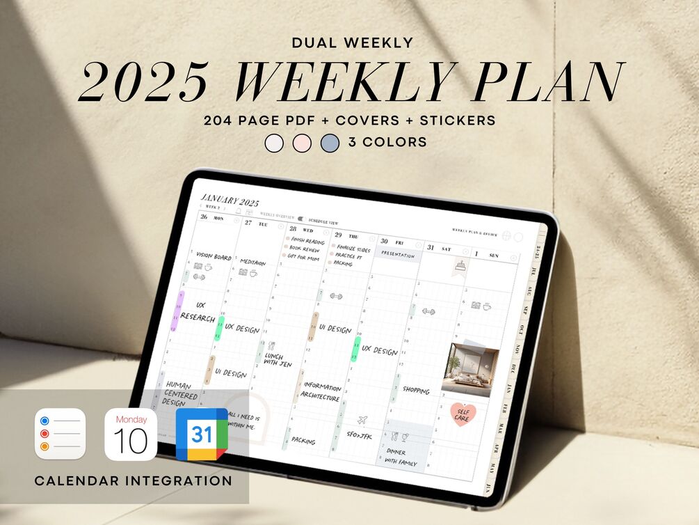 Not a heavy daily planner? This simple 2025 Weekly Planner is focused on weekly planning pages. The 2025 digital planner includes Yearly, Monthly calendars, Weekly plan pages. 2 Notepaper, this is the tool, if you need to stay organized minimally.