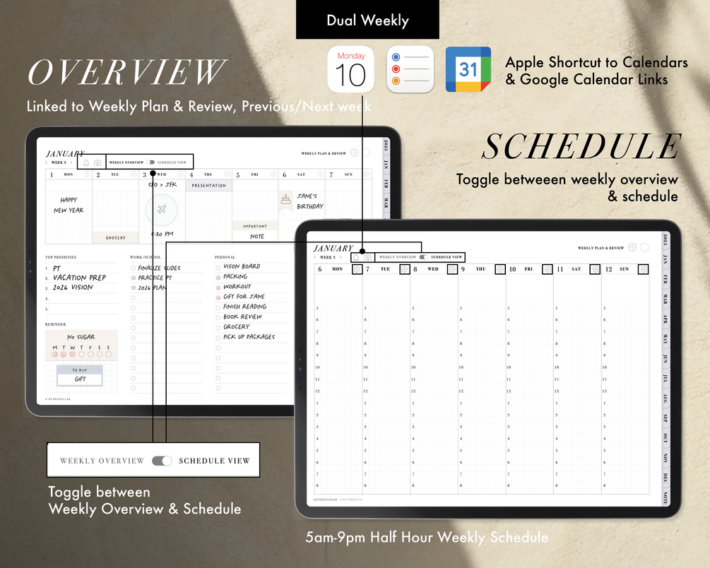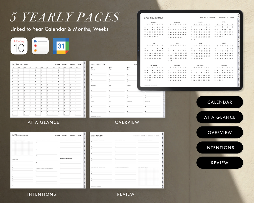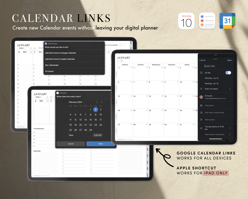 Apple/Google Calendar Integrated Digital Planners (Hyperlinked PDF) with Stickers